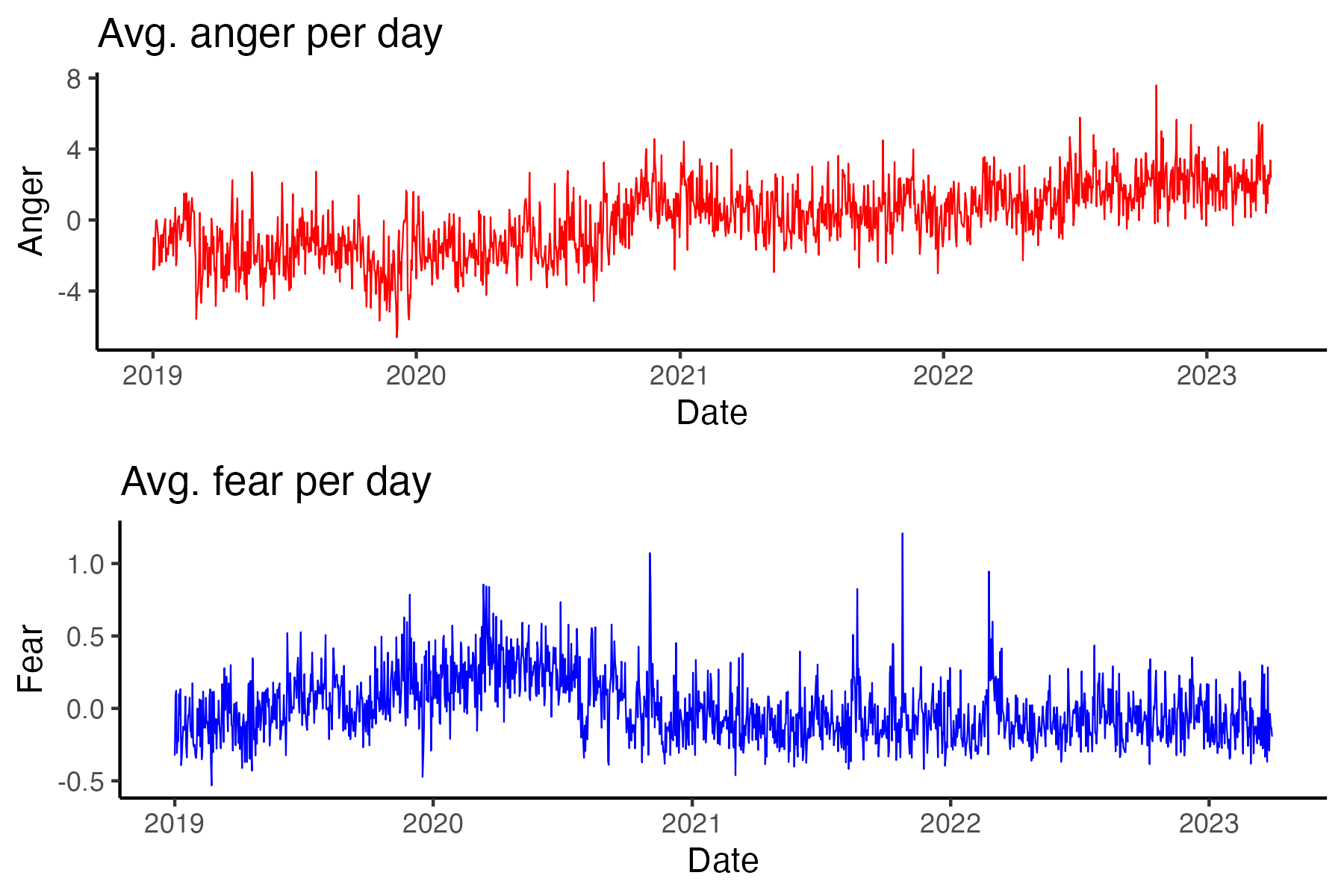 \(\uparrow\) more anger, disgust and fear
