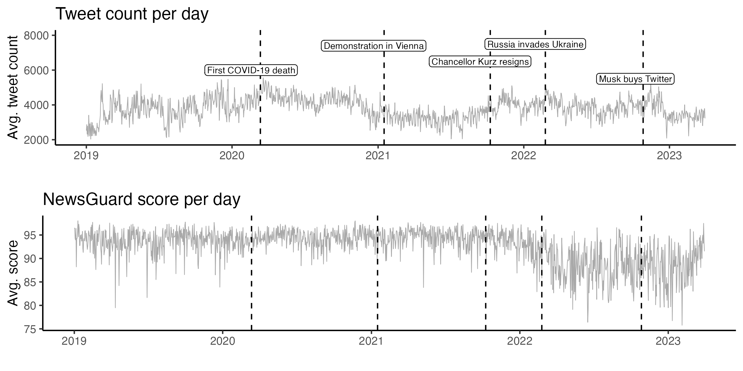 - and largely reflect user preferences for such contentData set: 2019-2023 timelines of 29k Austrian Twitter users (~140M tweets) \(\rightarrow\) pre-registered!