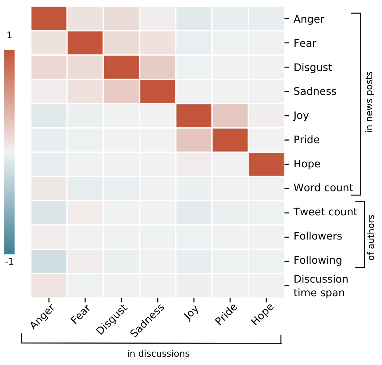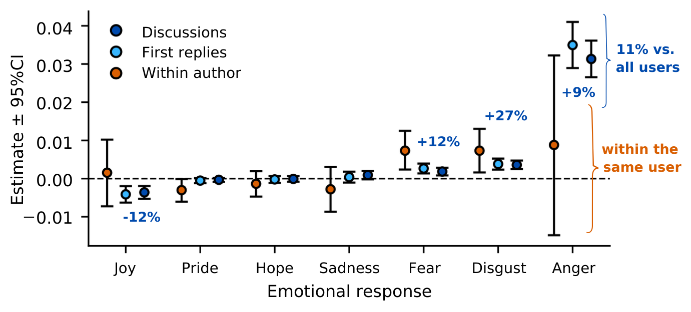 \(\uparrow\) more anger, disgust and fear
