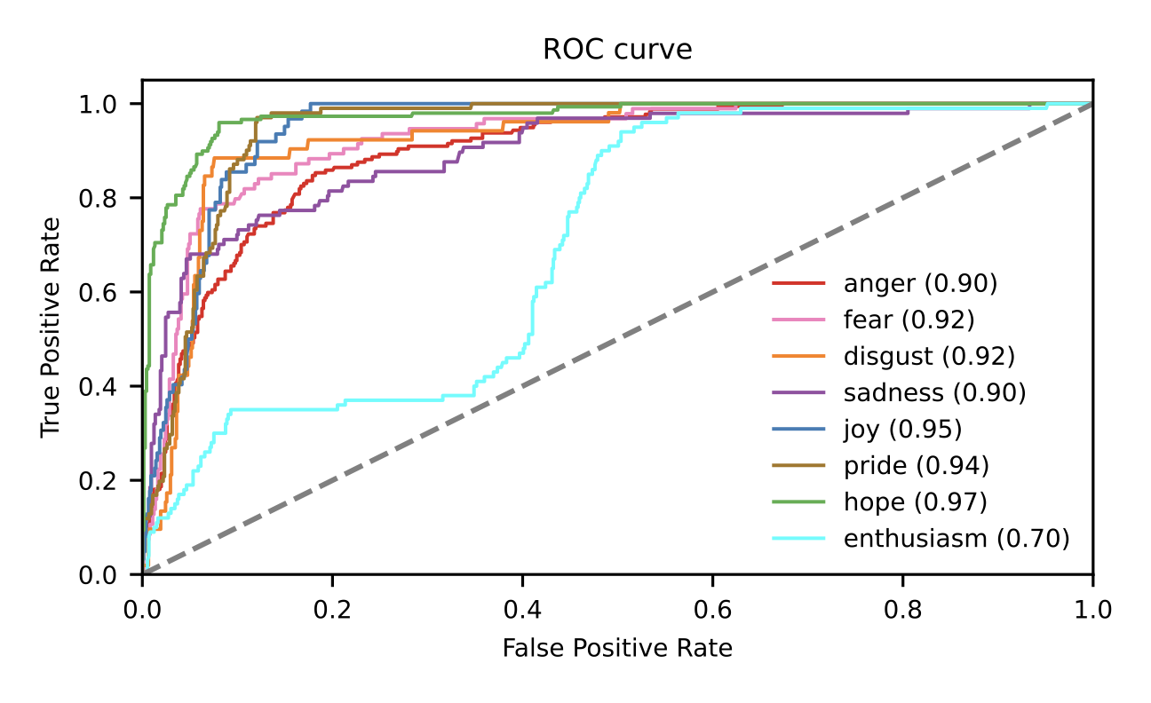 \(\rightarrow\) probability of each tweet containing each emotion (0-1)